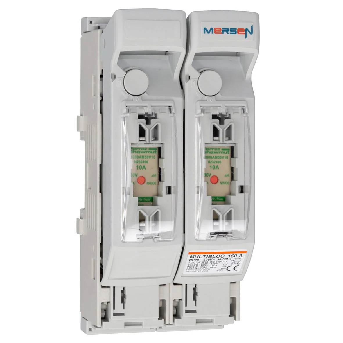 Fuse carriers for NH type fuses, suitable for protecting and isolating cables between the battery and inverter. Integrated handle enabling use as an isolator.